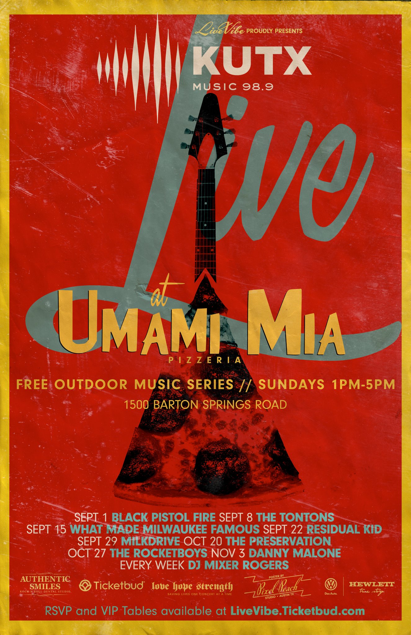 So excited about this one. Starting Sept 1, I will be joined by some great bands, at the new Umami Mia Pizzeria on Barton Springs EVERY SUNDAY from 1-5pm. Presented by The Live Vibe Collective & KUTX Austin. I will be spinning Austin Centric jams mixed with some of this years festival favorites. Oh and it’s free. Come make Sunday a fun day with me at Umami Mia Pizzeria.