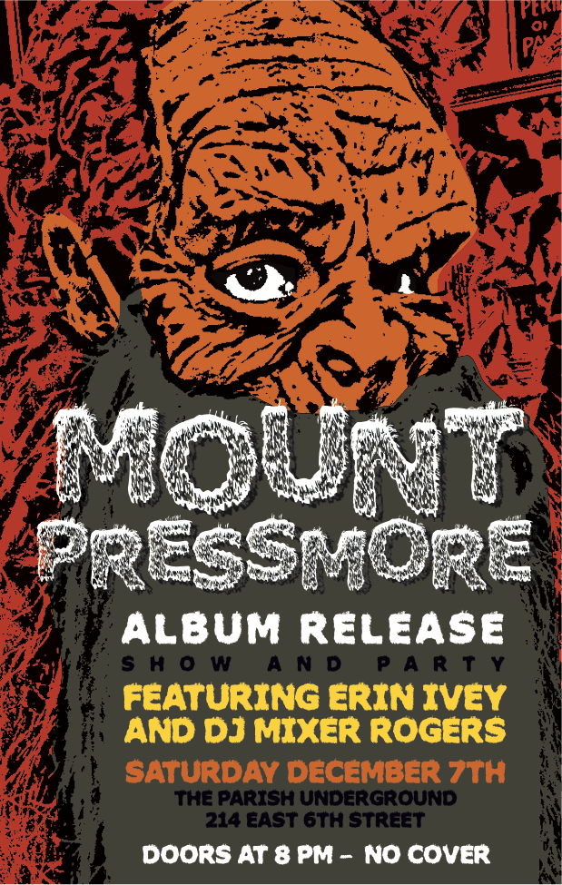 I am super excited about this one. For one, my loveley bride is on the bill. She also sings harmonies all over their new album. That is, Mount Pressmore’s new album. They are so great. I’ve been listening to their new album Enjoy on repeat for the past couple weeks. It’s hard to say exactly what type of music they make. It runs the gamete. I hear a little Peter Gabriel, Elbow, Fela Kuti, Talking Heads, Steely Dan…just to name a few. This is their Album Release Party and there is no cover charge. I will kick things off at 8pm, Erin Ivey goes on at 9pm. Then Mount Pressmore at 10pm. Then I will take the reins again and keep the party going until they tell me to stop. It’s going to be a great night of music.