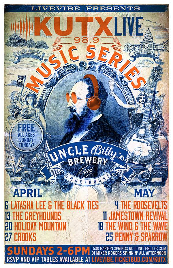 KUTX Live presented by Live Vibe returns!! This season it will be at Uncle Billy’s Brew & Que at 1530 Barton Springs Rd in Austin, Texas. We are going to throw down EVERY SUNDAY from 2-6pm. So many great bands. I will kick things off at 2pm. The band goes on at 3pm. And then I will take it to the house, finishing things off around 6pm. It’s ALL AGES and it’s a FREE SHOW but if you’d like some VIP treatment, you can get on that right here. The best Sunday Funday in Austin. See you there!
