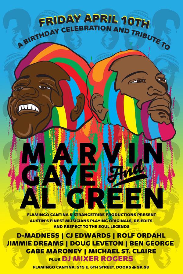 Strange Tribe Productions presents a Birthday Celebration and Tribute to Marvin Gaye and Al Green. Friday April 10th at Flamingo Cantina. I got some good stuff planned for this one!