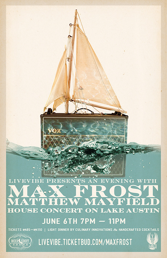 This is gonna be good. Max Frost. Matthew Mayfield. And me! Another Live Vibe House Concert on Lake Austin. Click here for tickets and more info!