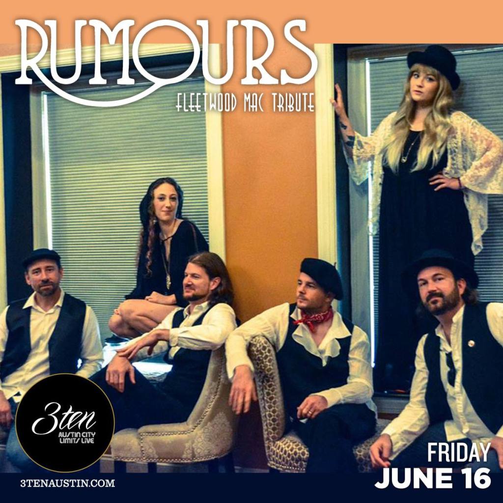 I’ll be opening up for Rumours (Fleetwood Mac Tribute Band) on Friday June 16th at 3TEN ACL Live. I’ll kick things off at 8pm and stick to all your classic rock favorites. Get your tickets HERE. Hope to see you.