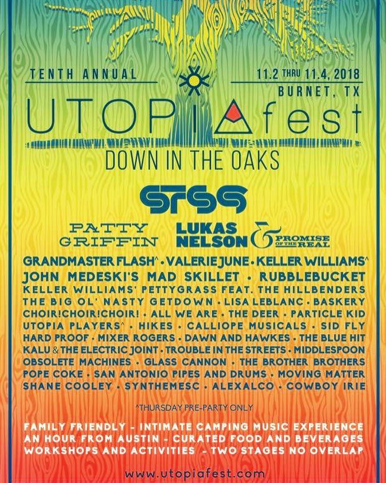Someone pinch me. I’m on the same bill as Grandmaster Flash. We’ve also got Lukas Nelson, Sound Tribe Sector 9, John Medeski, Patty Griffin, Valerie June, my current favorite, The Deer, and so many more great bands. It’s the Tenth Annual UTOPiAfest! Get your tickets at utopiafest.com See you Down In The Oaks.