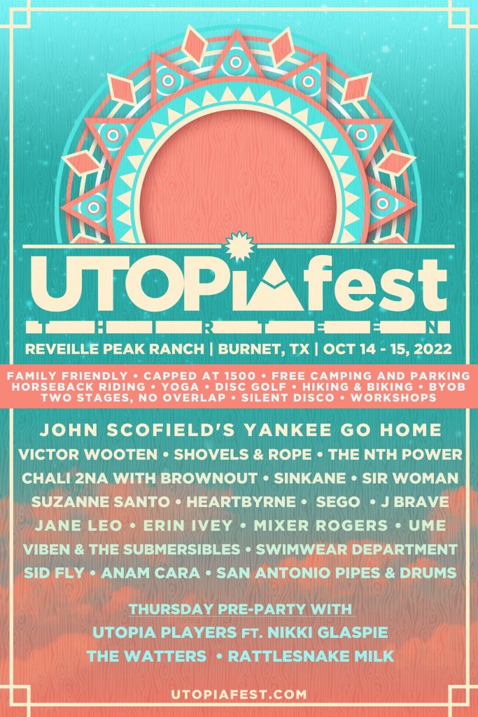 I can not wait for this one. Could be one of the last Utopiafest’s for a while so let’s make it count. So excited to share a bill with my love Erin Ivey. And then there’s the homies in Heartbyrne and Brownout. We got the verbal Herman Munster himself, Chali 2na, Bass wizard, Victor Wooten and the guitar legend, John Scofield. So many other amazing acts. Get your tickets HERE and let’s go camping Oct 13-15 at Reveille Peak Ranch in Burnet TX. Full schedule coming soon.