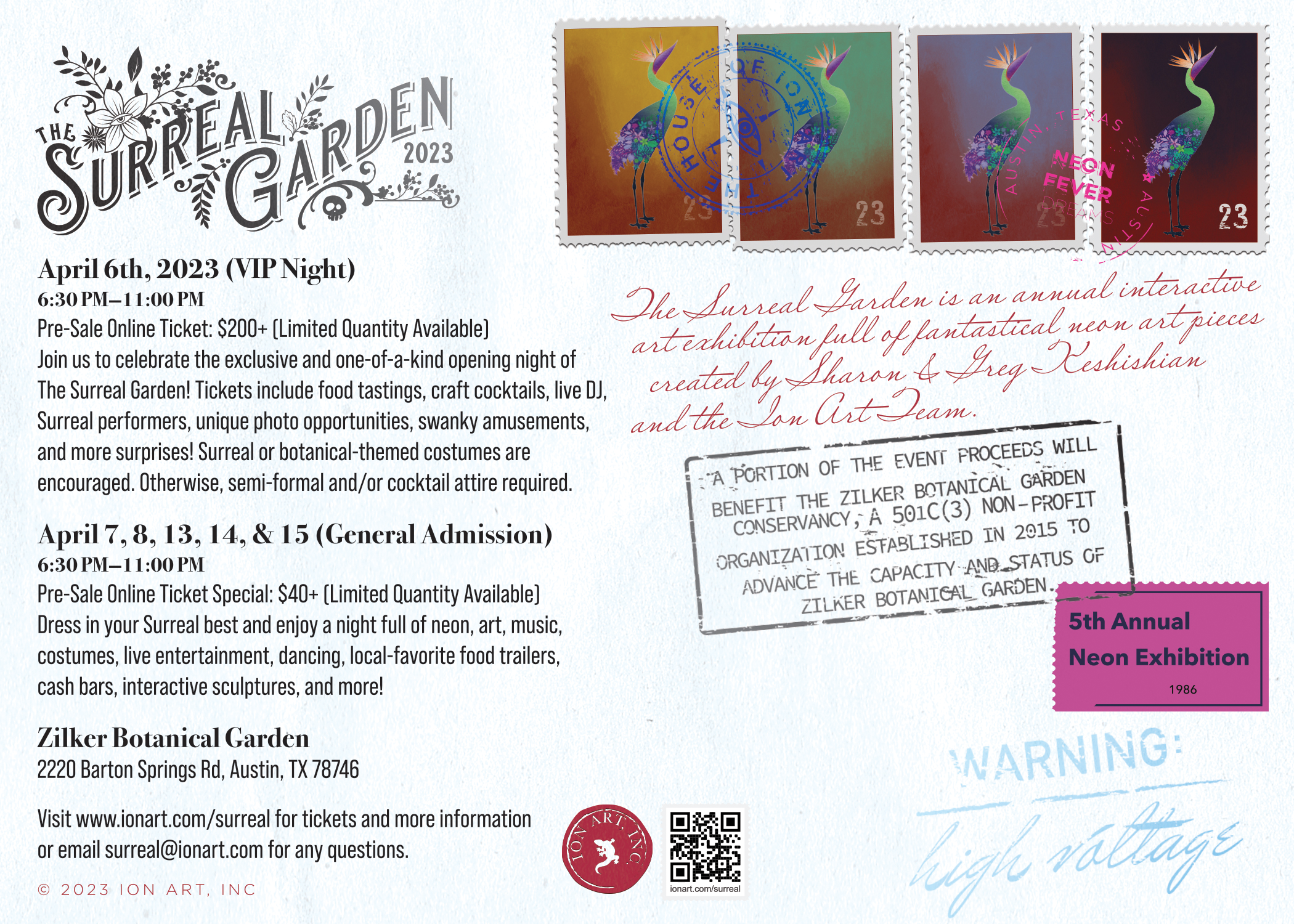 I don’t have big enough words to describe how amazing and over the top this event is. Truly a feast for the eyes and ears. This will be the 5th annual Surreal party put on by Ion Art, and I am proud to say I have DJ’d every one of them. This year I will be providing the soundtrack each and every night. 6 nights total. April 6,7,8,13,14,15. Two weekends in a row. Thu-Sat. Zilker Botanical Gardens in the heart of Austin. Costumes encouraged. I would get your tickets early.